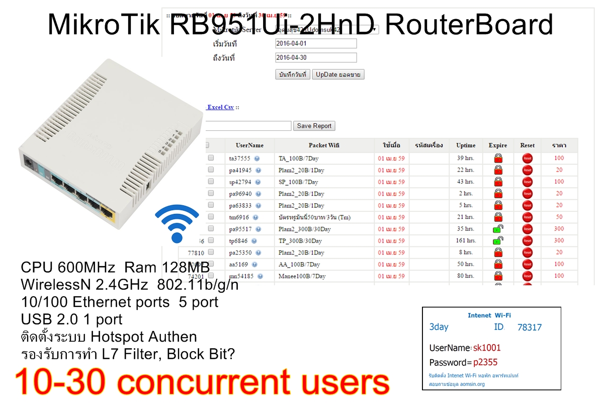 HotSpot Wi-Fi อพาร์ทเมนท์ คอนโด หอพัก Office โรงแรม รีสอร์ท ร้านอาหาร ร้านกาแฟ แบบใช้ User Login ออกคูปอง กำหนดรหัสเอง การกำหนดสิทธิการใช้งาน.