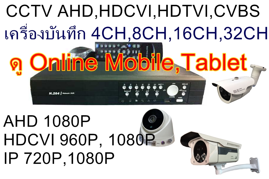 กล้อง CCTV AHD, HDCVI, HDTVI, CVBS (4in1) เครื่องบันทึกภาพ (DVR) และ (NVR) + IP CAM ขนาด 4CH,8CH,16CH,32CH สามารถ ดูOnLine ผ่านมือถือ และเเท็บเล็ต Tablet PC ได้.